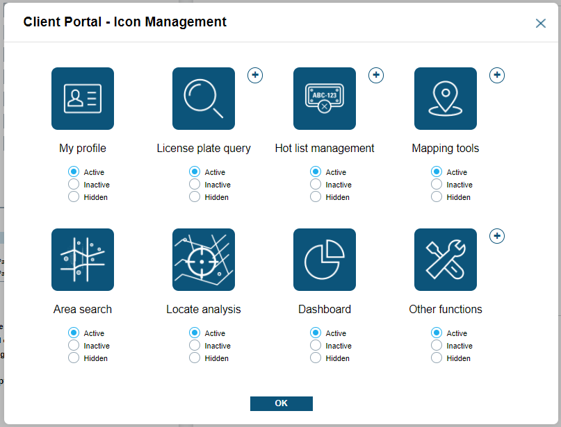 Icon Management allows site managers to turn on, hide, or disable specific icons and features. If an icon is disabled, you will see a grayed out icon. If the icon is hidden, you cannot see the icon within their home screen of ClientPortal when they login.