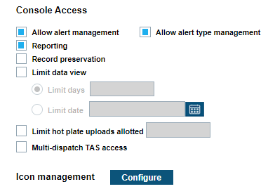 You can configure their Alert Management options if allowed by the site manager. Likewise, site managers can set the Alert Management by selecting Configure. There are two main alerts allowed through Alert Management which consist of Email Service and Target Alert Service (TAS). A fourth alerting feature, Mobile Hit Hunter (MHH) can also be configured when applicable for the Mobile LPR Camera system.