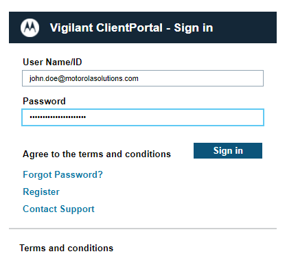 Vigilant ClientPortal Login Screen