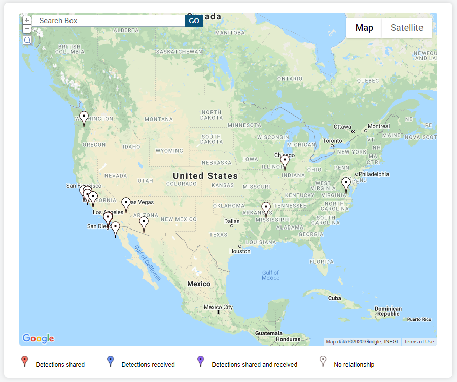 The National LPR Data Sharing Map represents a list of Law Enforcement Sites using LPR technologies and within the Sharing Pool.