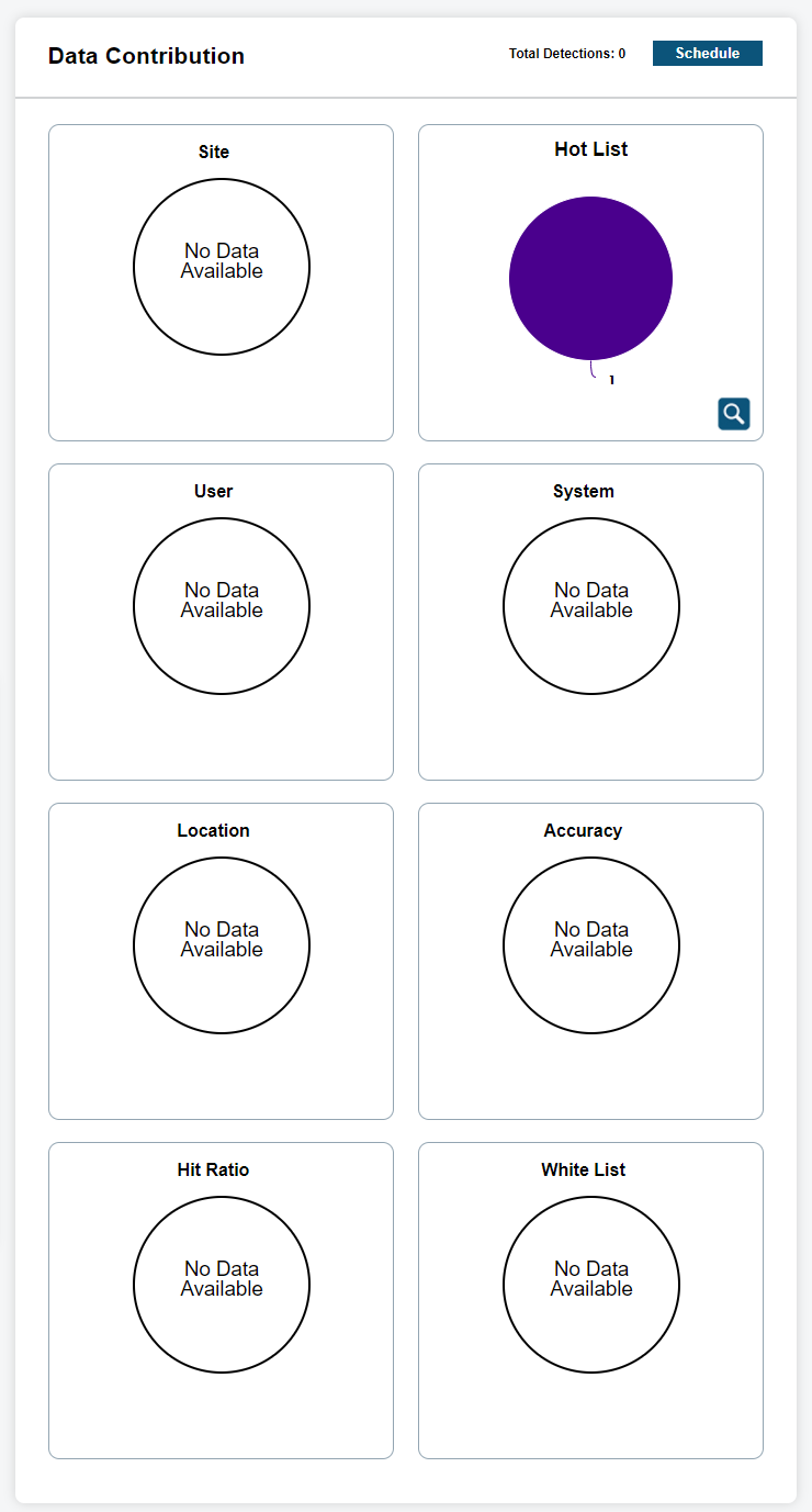 - Displays the ratio of hits for each Alert Type within the Hot List. Each Hot List Source available, will be listed with Alert Type ratios.
