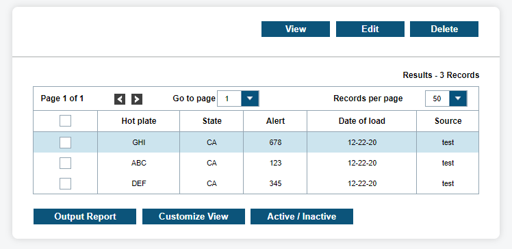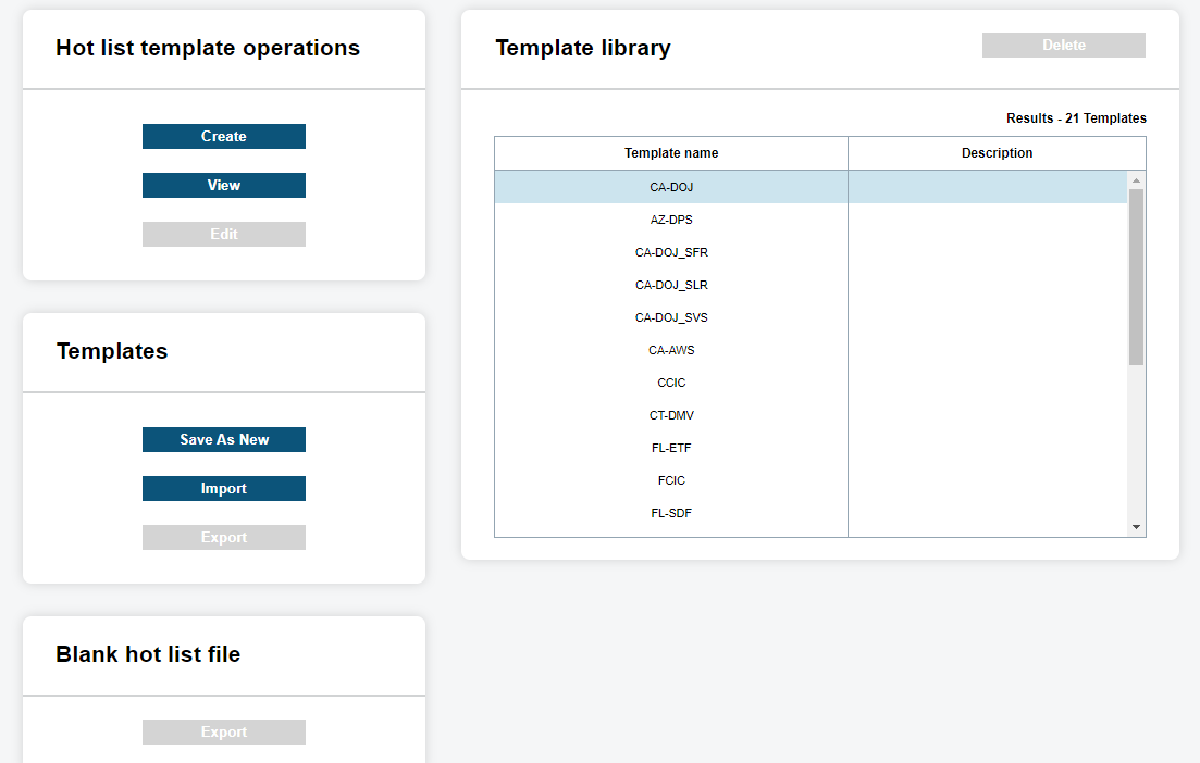 If you want to delete all the Hot List Records loaded, simply highlight the desired file and click Delete. You will be prompted to confirm your selection.