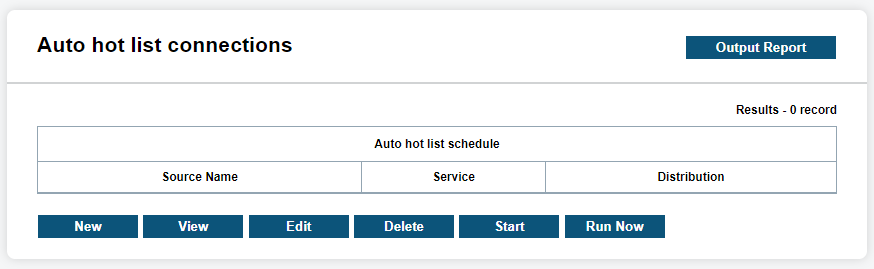 You will be presented with the following options: New, View, Edit, Delete, Start, and Output Report.