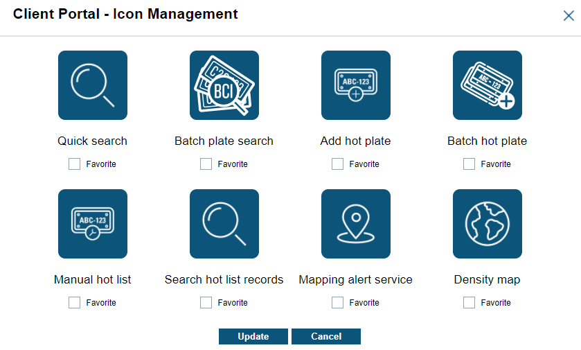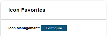 Icon Favorites allows you to set up three icons for their homepage. These icons will be a direct link to the frequently used features. When you select Configure, you will be represented with the Icon Management screen. You can select Favorite box to define which feature will be displayed on the home screen.