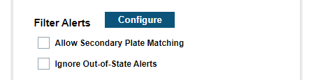 Within the Filter Alerts section, you also have the option to Allow Secondary Plate Matching. This feature allows for the alerting on secondary OCR reads from the ALPR systems. Since we store two reads for each scan if the confidence of the first read is low, this allows for increased alerting on hard to read plates.