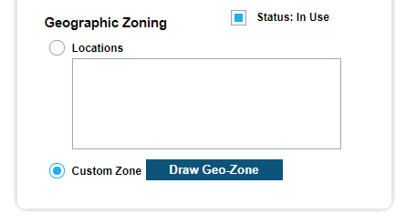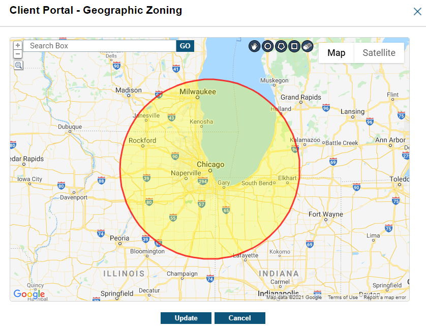 The final section for Alert Management is the option to filter by Geographic Zoning. This allows you to define the exact perimeter notification. To use the polygon drawing tool, use the Google Map zooming tools in upper left corner to zoom-in on region to select. Next, select the Pen icon in lower left corner to begin polygon creation. Generate polygon selection by Left-clicking on the map with at least three points. To reset the zone, click Clear, and draw again. You can add multiple zones by clicking Add. Click Save to save the zone and click Update.